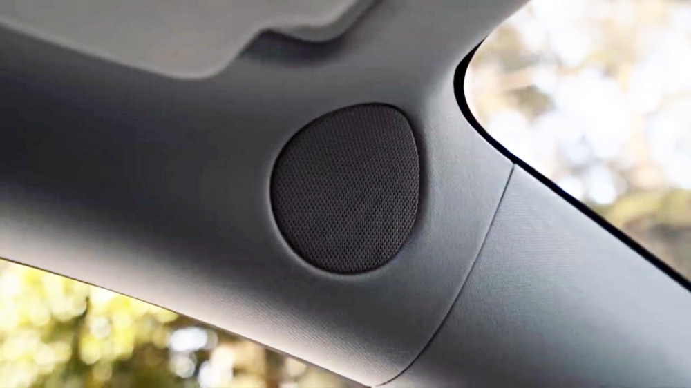총 14개의 스피커와 서브우퍼가 있고 해치백 디자인으로 스피커 두 개는 트렁크 쪽에 있습니다