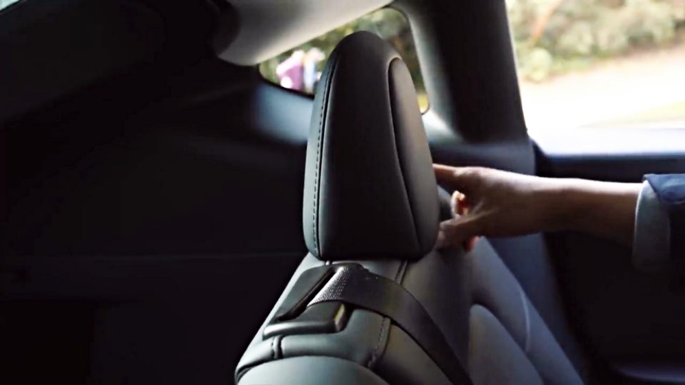 테슬라 모델y 내부 중간에는 암레스트가 있고 모델3보다는 넓은 편입니다 헤드레스트 또 이렇게 올릴 수 있습니다