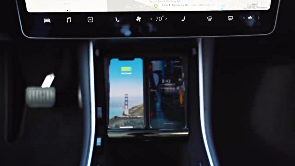센터 콘솔 밑에는 usb c타입과 usb a타입으로 되어 있고, usb c타입은 는 무선 충전 패드 가 연결되어 있어 모델 y 의 기본적으로 무선 충전 패드 가 제공되며 2대를 동시에 충전할 수 있습니다